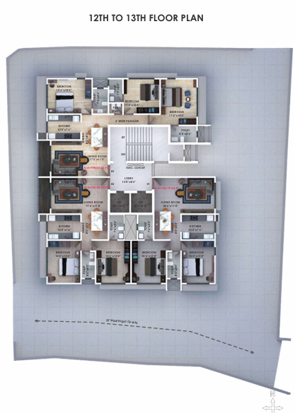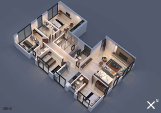 Rising gracefully over 15 floors, this premium tower features spacious 2 & 3 BHK residences, each thoughtfully designed with private decks to bring in natural light and air. The homes are crafted to cater to the needs of modern urban families while maintaining a serene and secure living environment.